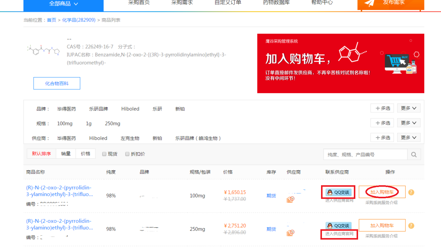 支持化学试剂、生物试剂、仪器耗材、科研服务的采购;
